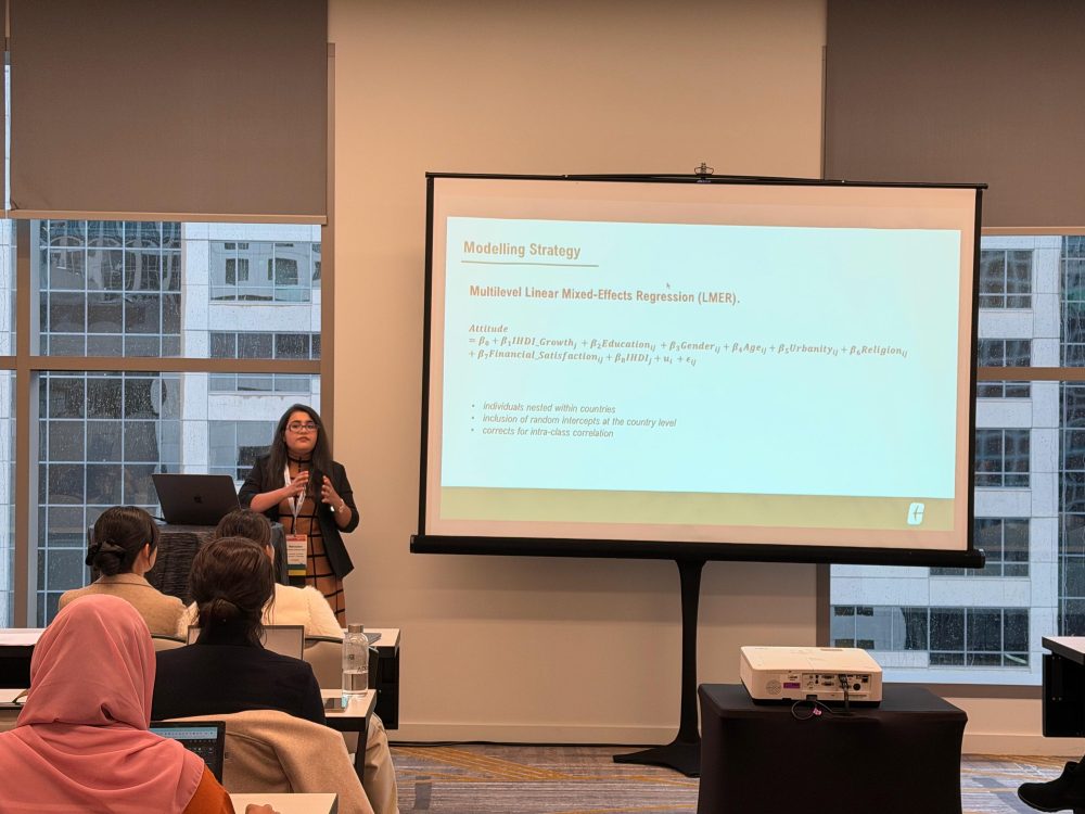 • Mahzabin Fatema Kabir – presented her paper “Navigating Scientific Perceptions: How Socio-Economic Development Shapes Public Attitudes Across Developing Countries”, co-authored with Dr. Yang Cao.  Mahzabin also co-presented with Dr. Stephanie Potochnick, their paper “Settlement-Based Disparities in Latino/a Families’ Head Start Access and Enrollment”. Mahzabin also served as the session chair for the panel “Innovation Under Pressure: Policies, Shocks, and Spillovers.”